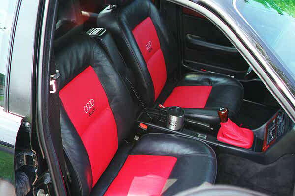 Info on me and my car: I found this car on the internet last June 98. The previous owner lives in Nashville, Tenn. He sent me photos and copies of service records, we negotiated over the phone and my 11yr old daughter and I flew to Nashville on Fri July 3rd to pick it up. It was an uneventful (car prob) but fun trip back. I have been an Audi enthusiast since 1990 +/- A friend of mine in Omaha, NE had a new 5000 and I was hooked ever since. I've owned several model years from 87-91. A few years ago I was flying regularly to Chicago to buy an Audi that I would spot in the paper, buy low and made necessary repairs and then re-sold. Did it more of a hobby than anything. I guess I like the thrill of the hunt. This 91 200tq is my favorite of them all. I am almost fanatical about keeping the car clean as my family and neighbors will attest to. I have maybe 1 or 2 more pics to send, I recently put an Audi Quattro decal across the windshield and painted a few engine parts red. Modifications to date: K&N air filter Boge Pro-Gas struts All subframe bushings, trans mounts, etc... New wheel bearing, repack all CV joints Bridgestone RE71 215/60 V15 Leather inserts w/ Audi logo in all four seats Car is basically stock, next upgrade(s) will be : Hoppen or IA chip Brembo Brakes Ronal or TSW Revo wheels Strut tower brace Let me know if you have any questions. cheers, Keith